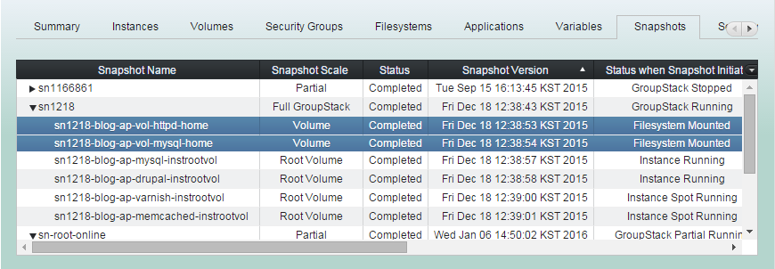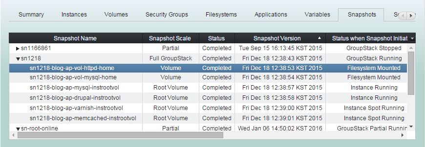 (1) Click "Snapshots" tab and select snapshots to restore groupstack from.