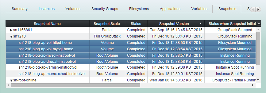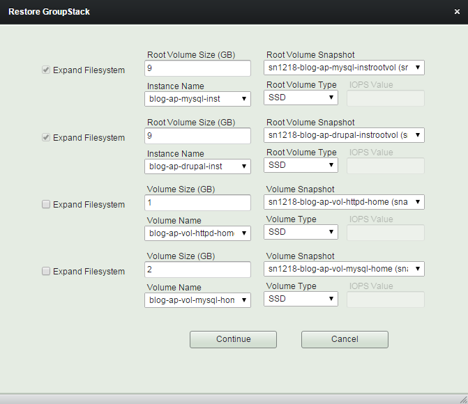 You can partially or entirely restore groupstack with those snapshots you select.