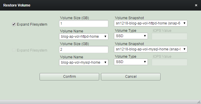 2. Creates volumes and on-demand root volumes from snapshots with newly extended sizes and modified types.