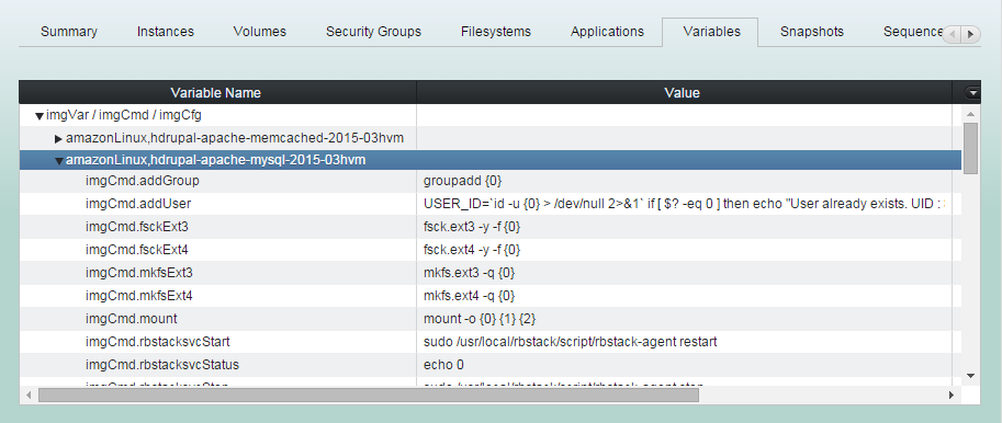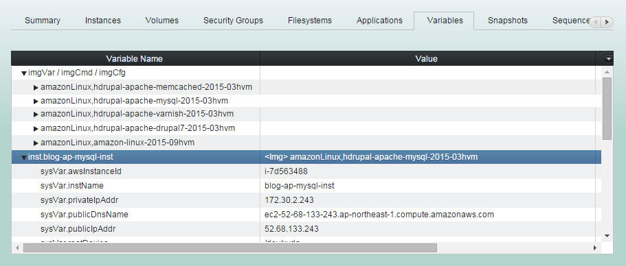 (1) Click "Variables" tab in groupstack sub table view. And check the image type of instance you want to lookup its variables.