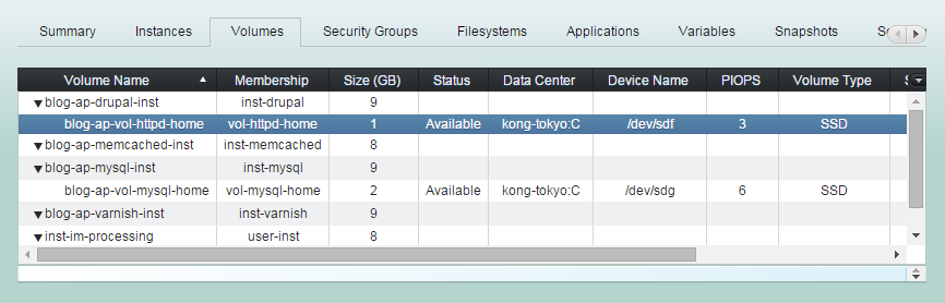 (1) Click "Volumes" tab in groupstack sub table view. And select a detached volume (available) you want to modify.