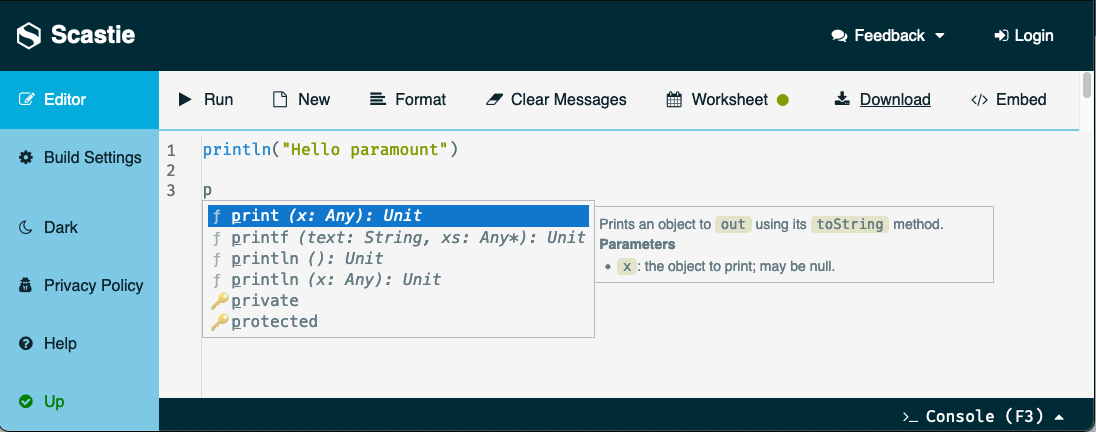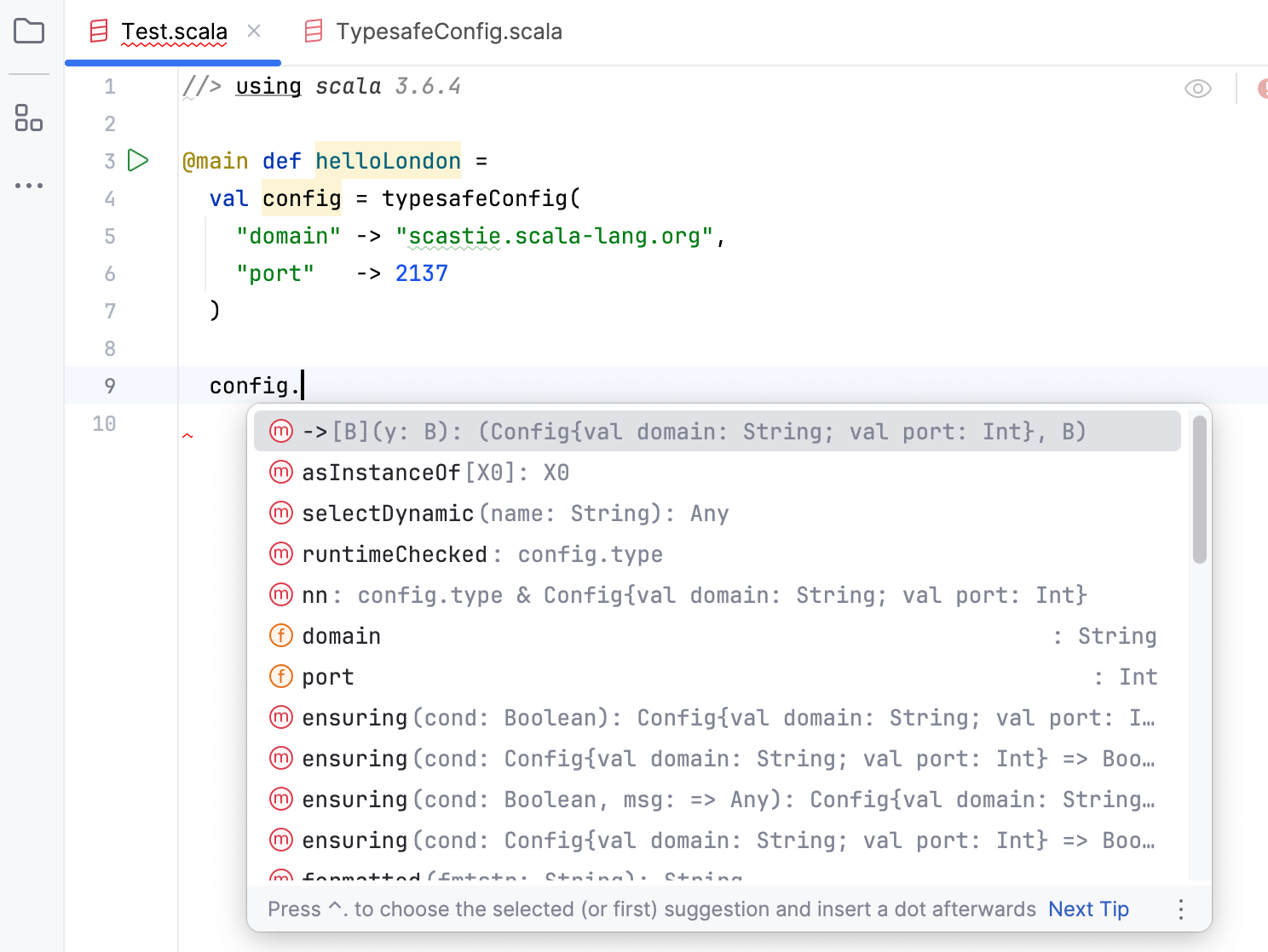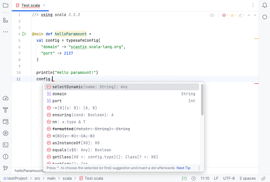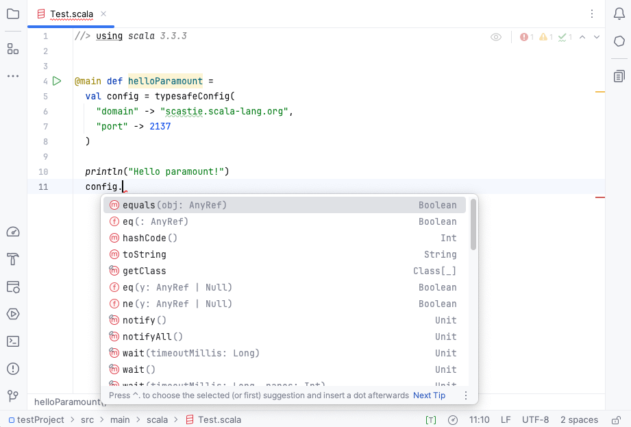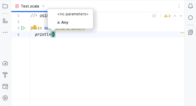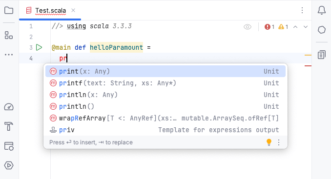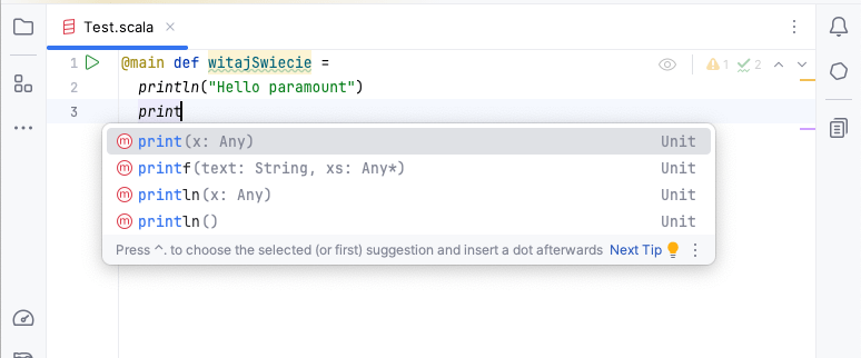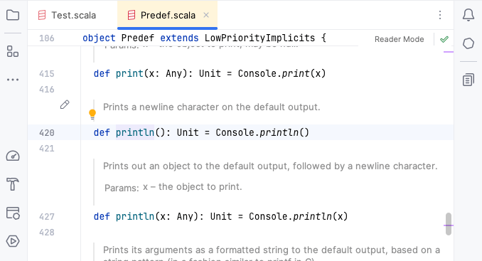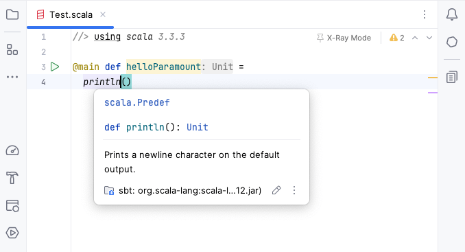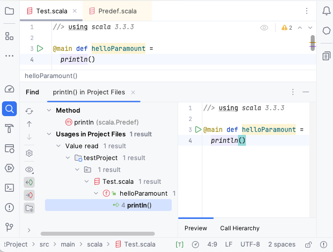 [2:4..2:11) => scala/Predef.println(+1).scala/Predef.String#scala/Predef.String#IntelliJ Symbol