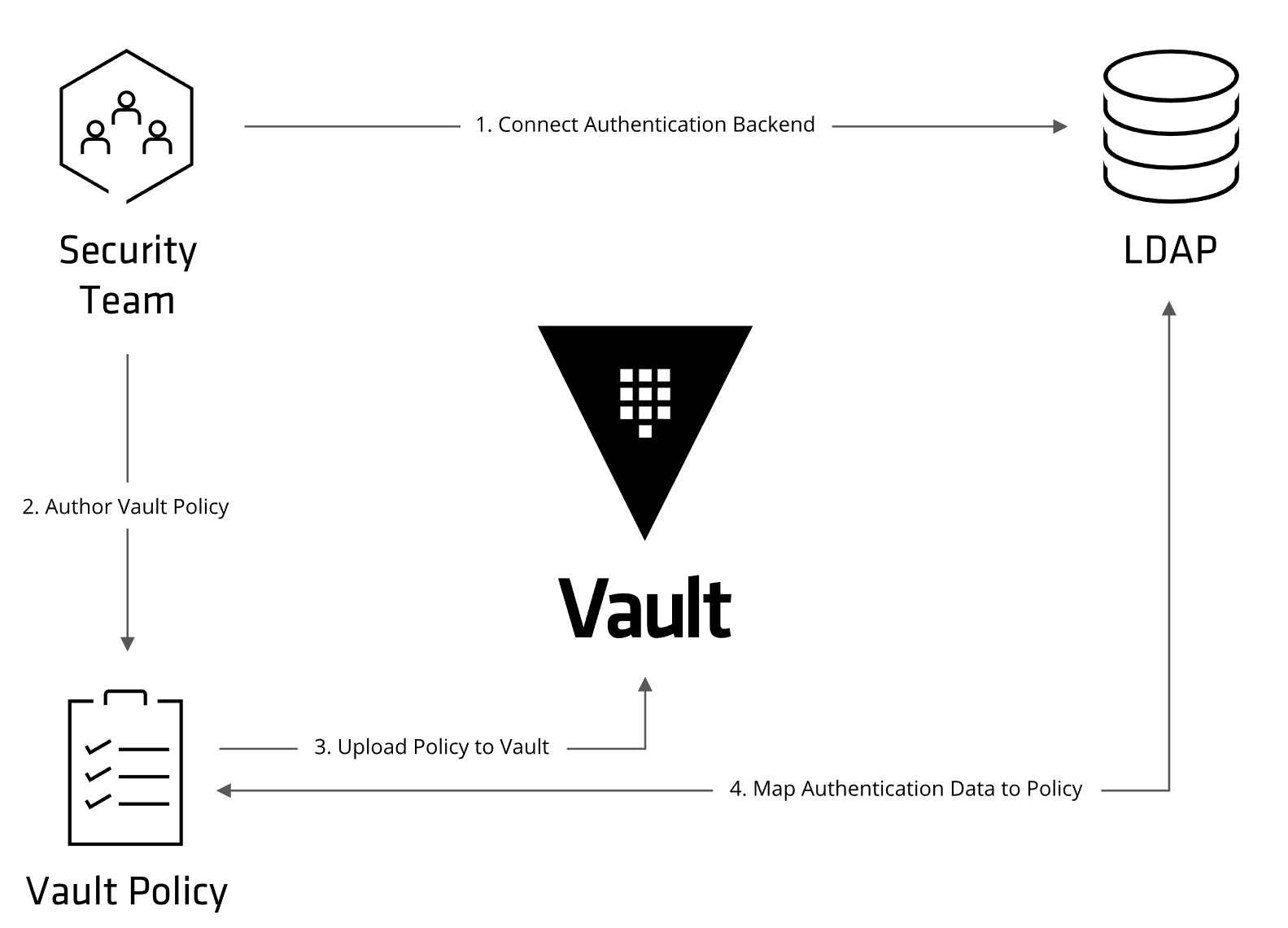 vault write sys/policy/fs policy=@./policy.hclLDAP (Username + Password)