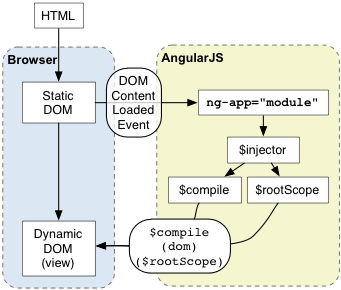 Compiler is an Angular service which traverses the DOM looking for attributes. The compilation process happens in two phases.
