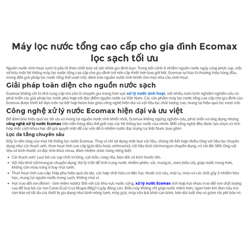 May loc nuoc tong cao cap cho gia dinh Ecomax loc sach toi uu