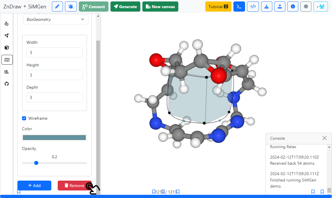 That's it! SiMGen will generate, hydrogenate and relax the full structure all in one click!