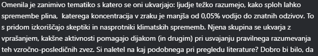 - Začetna ideja: Uporaba ISLE pristopa za poučevanje o fizikalnem ozadju podnebnih sprememb