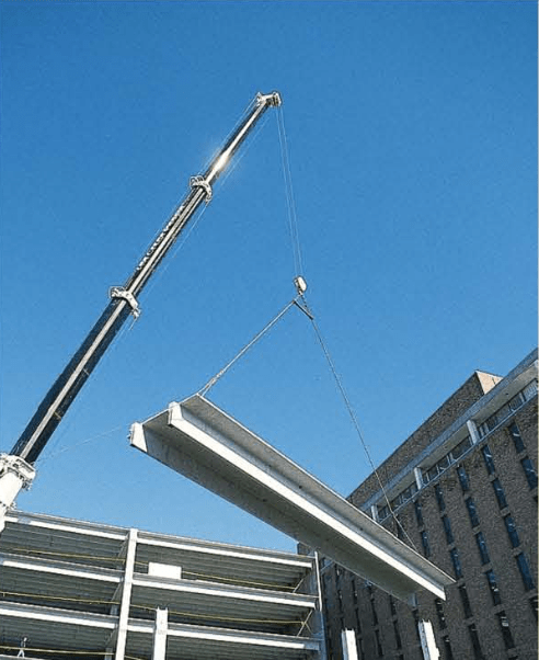Por um curto período de tempo, o guindaste na figura levanta a viga de 2,50 Mg com uma força de F = (28 + 3y) kN. Determine a rapidez da viga quando ela subiu y = 3 m. Além disso, quanto tempo leva para atingir essa altura a partir do repouso?