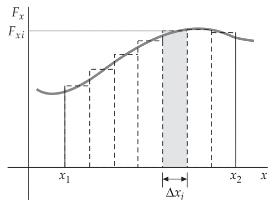 Aplicamos a equação do trabalho e somamos para todos os \(n\) retângulos sob a curva: