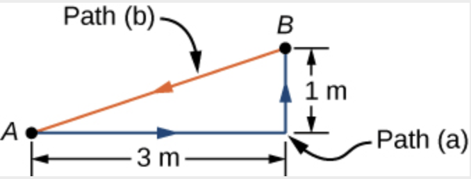 Você decide mover seu sofá para uma nova posição no chão horizontal da sua sala de estar. A força normal no sofá é de 1 kN e o coeficiente de atrito é de 0,6. (a) Primeiro você empurra o sofá 3 m paralelo a uma parede e depois 1 m perpendicular à parede (A a B na Figura). Quanto trabalho é feito pela força de atrito? (B) Você não gosta da nova posição, então você move o sofá de volta à sua posição original (B para A na Figura 7.4). Qual foi o trabalho total feito contra o atrito movendo o sofá para longe de sua posição original e para trás novamente?