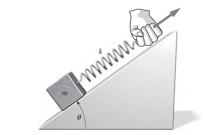 A energia do sistema é uma grandeza que não é conservada quando há forças externas aos sistema. Esse sistema é dito fechado. A mola efetua um trabalho elástico, mas não pertence ao sistema, por definição na solução do problema.