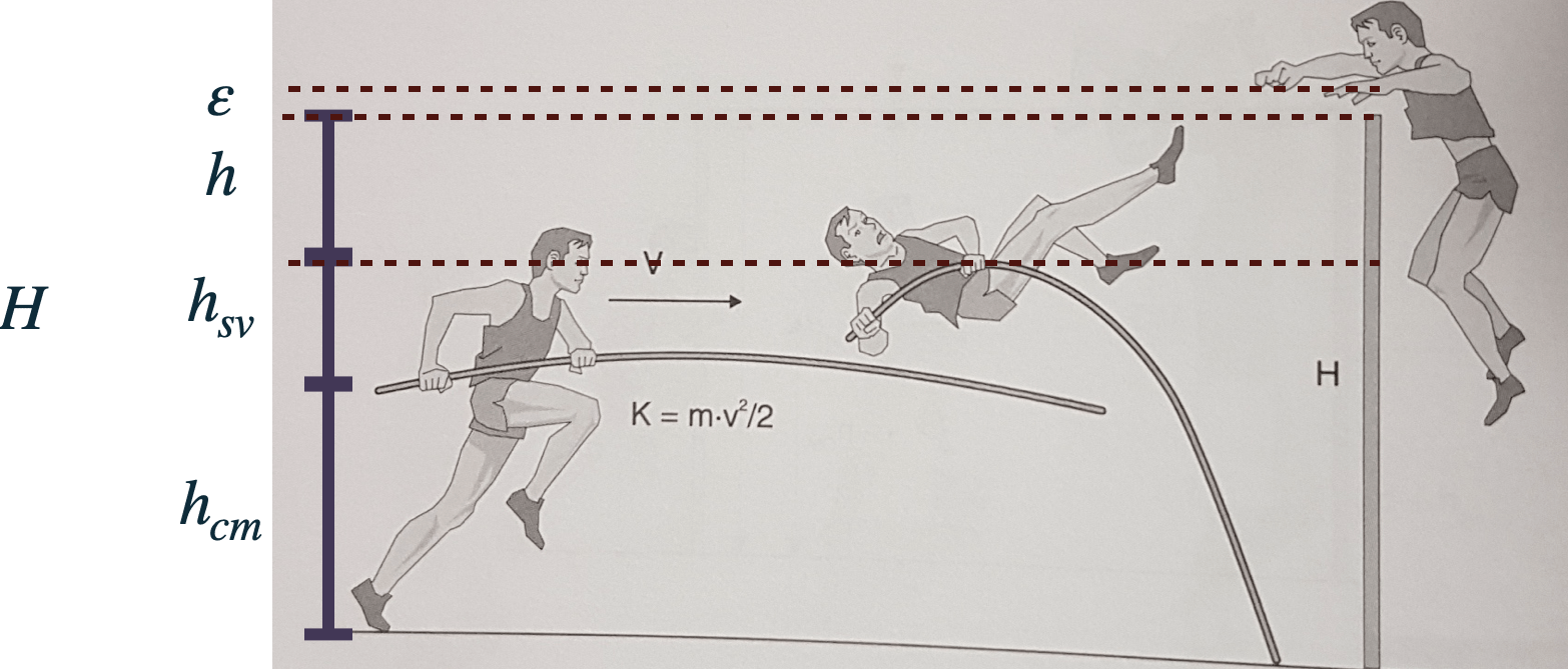 Altura que o centro de massa é erguido até perder contato com a vara