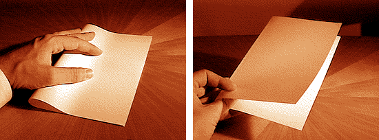 O papel permanece dobrado.