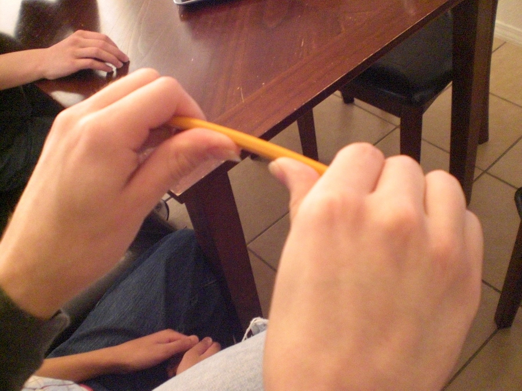 Energia química quebrada: Se você dobrar o lápis o suficiente, ele quebrará. A energia necessária para quebrar as ligações químicas do lápis é de cerca de 0,001 J.