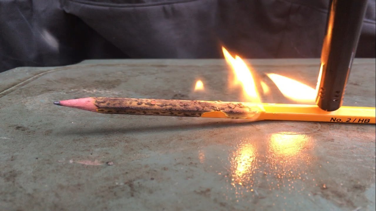 Energia química: Se você queimar o lápis, a madeira se transforma em cinzas e a energia de configuração armazenada nas ligações químicas é convertida em energia térmica, que você sente como calor. A energia convertida pela queima do lápis é de 100.000 J.