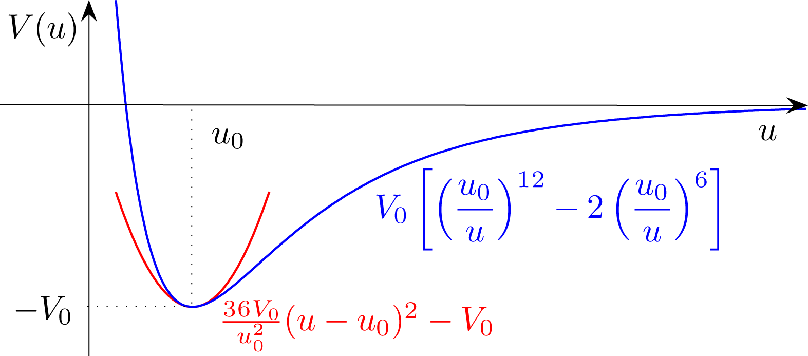 A força varia linearmente com a deformação \(x\) em torno do equilíbrio \(x_0\).
