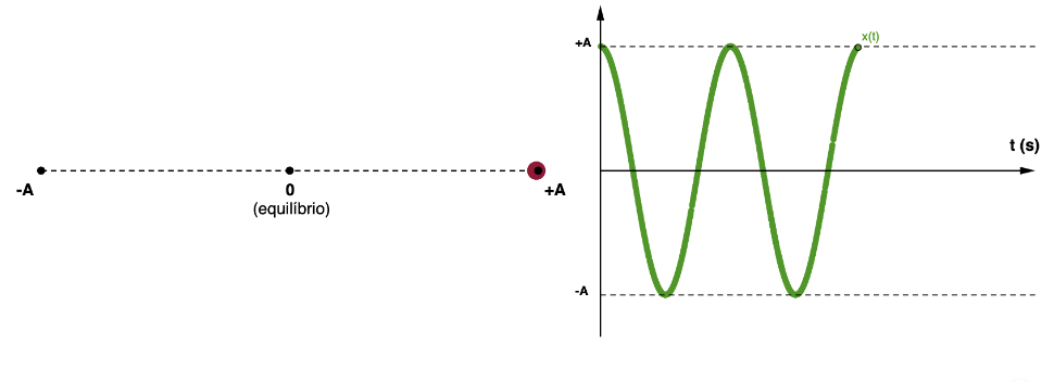 Representa a deformação máxima \(|x_{max}| = A\) a partir da posição de equilíbrio.