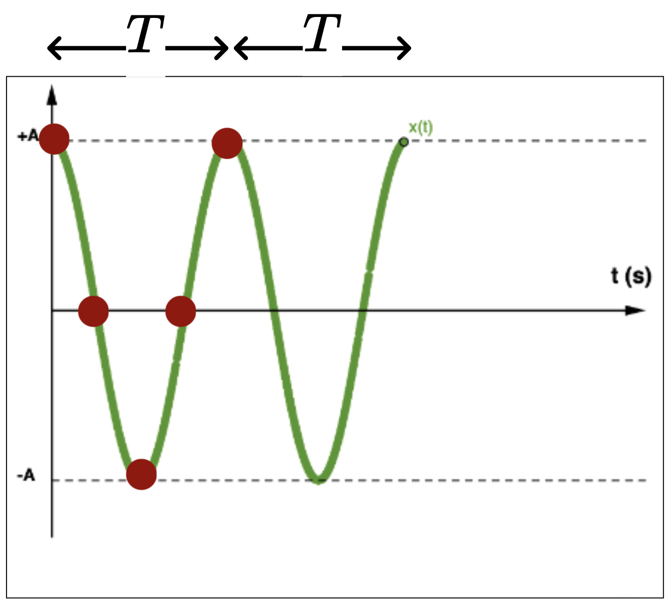 O tempo para uma oscilação completa tem o nome de Período, \(T\).