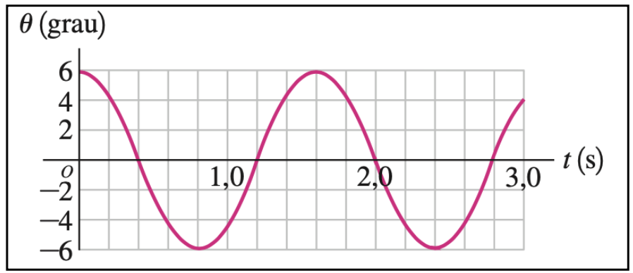 Fonte: Wolfgang & Bauera) A partir da leitura do gráfico informe e/ou calcule as grandezas físicas: período (T), a frequência (f), a frequência angular (𝜔) e a amplitude do movimento do pêndulo (θ0).