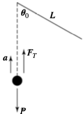 b) O pêndulo é puxado lateralmente até um ângulo θ0 com a vertical e a seguir é liberado a partir do repouso. Em que instantes de tempo, a partir da leitura do gráfico acima, o pêndulo passará pelo ponto mais baixo tal como mostrado no desenho abaixo? Justifique.