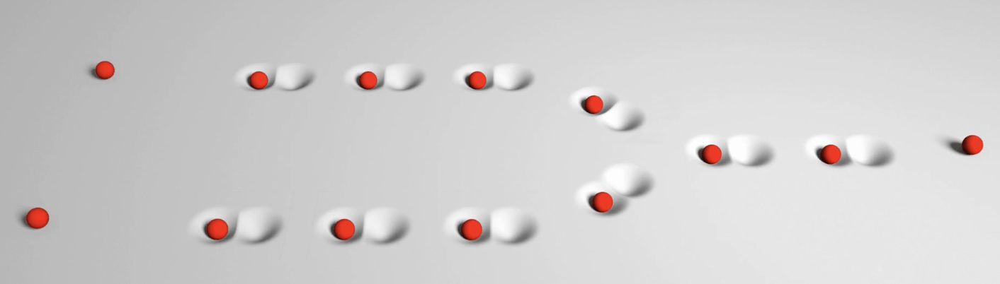 Cada bit consiste em duas posições em uma superfície de átomos de cobre e um átomo de cloro que podemos deslizar para frente e para trás entre essas duas posições.