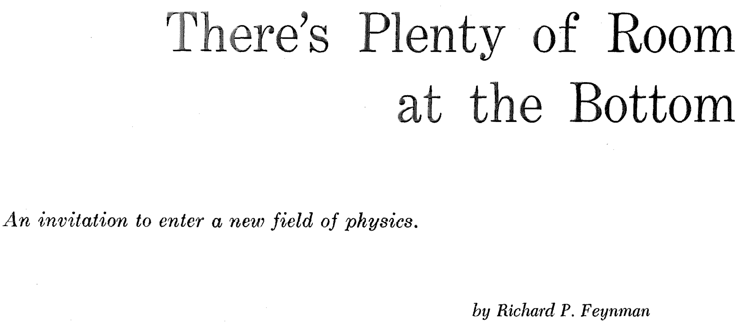 “O que eu quero falar é sobre o problema de manipular e controlar coisas em escala atômica. Tão logo eu menciono isto, as pessoas me falam sobre miniaturização e o quanto ela tem progredido nos dias de hoje. Elas contam-me sobre motores elétricos com o tamanho de uma unha do seu dedo mindinho."
