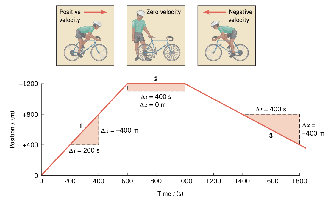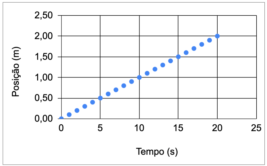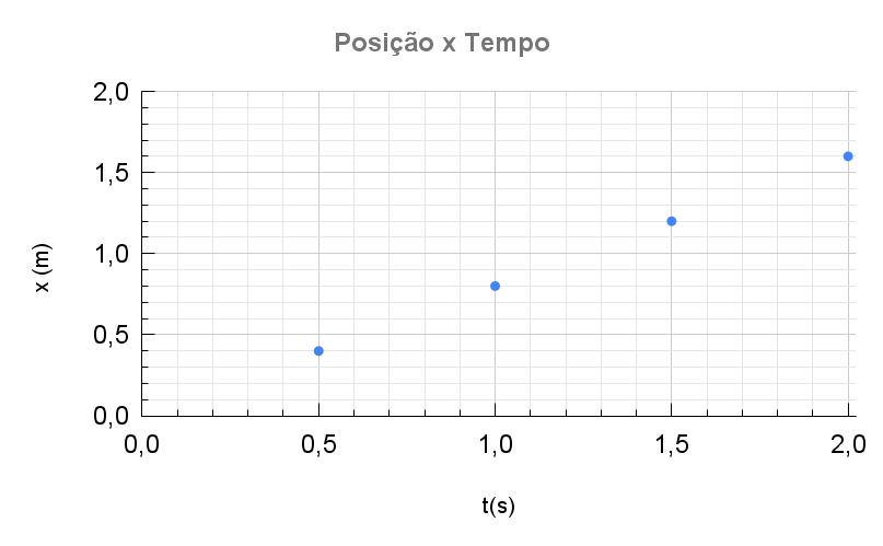 O movimento é descrito ao informar as grandezas físicas de posição (x) e tempo (t).
