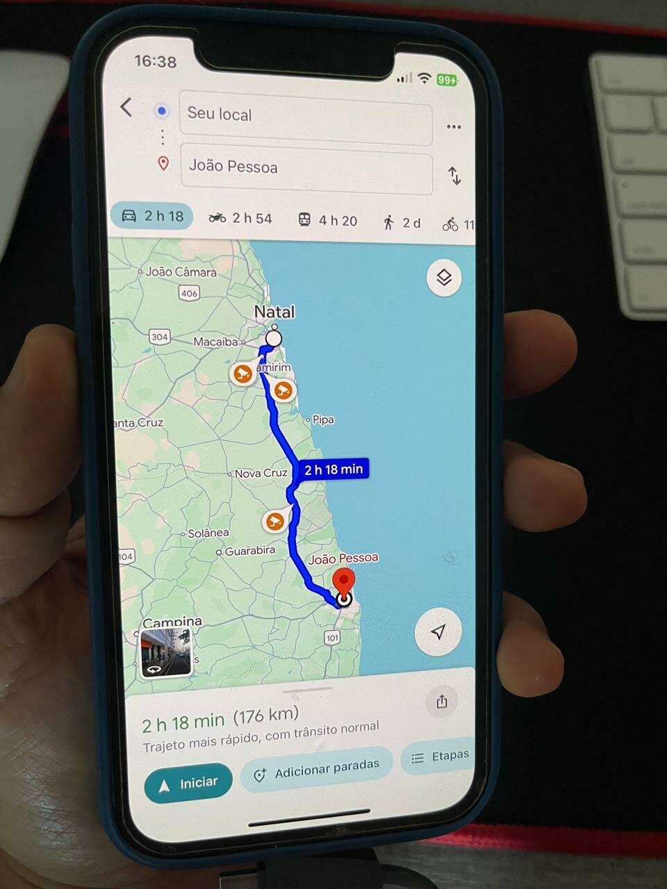 No movimento de um estudante em frente à ECT/UFRN representado pelos pontos azuis sobre o Google Maps, avalie: