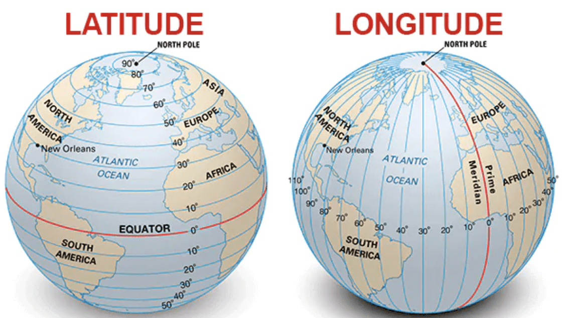 Latitude e longitude nada mais são do que nomes que as coordenadas geográficas únicas obtidas para cada ponto da superfície terrestre.