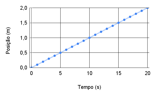 com inclinação constante no gráfico \(x\times t\).