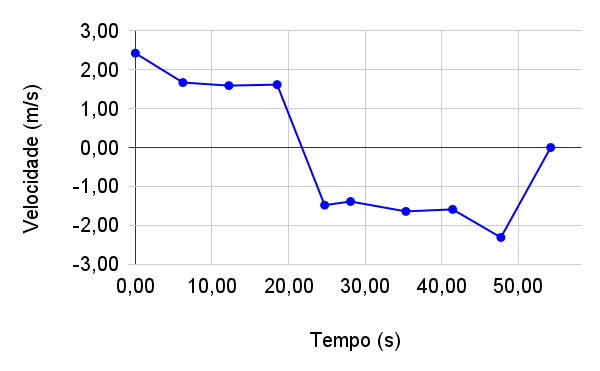 No gráfico velocidade x tempo, a inclinação da reta não é exatamente paralela ao eixo dos tempos.