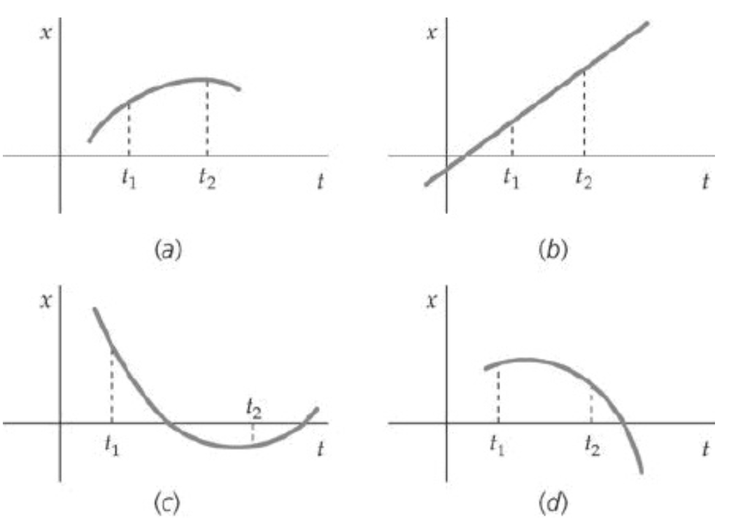 (a) A velocidade no tempo \(t_2\) é maior, menor ou igual à velocidade no tempo \(t_1\)?