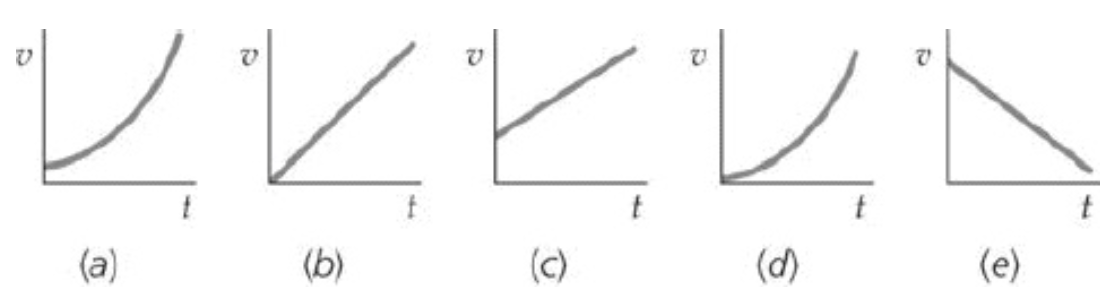 Quais das curvas velocidade versus tempo da figura melhor descrevem o movimento de um objeto: