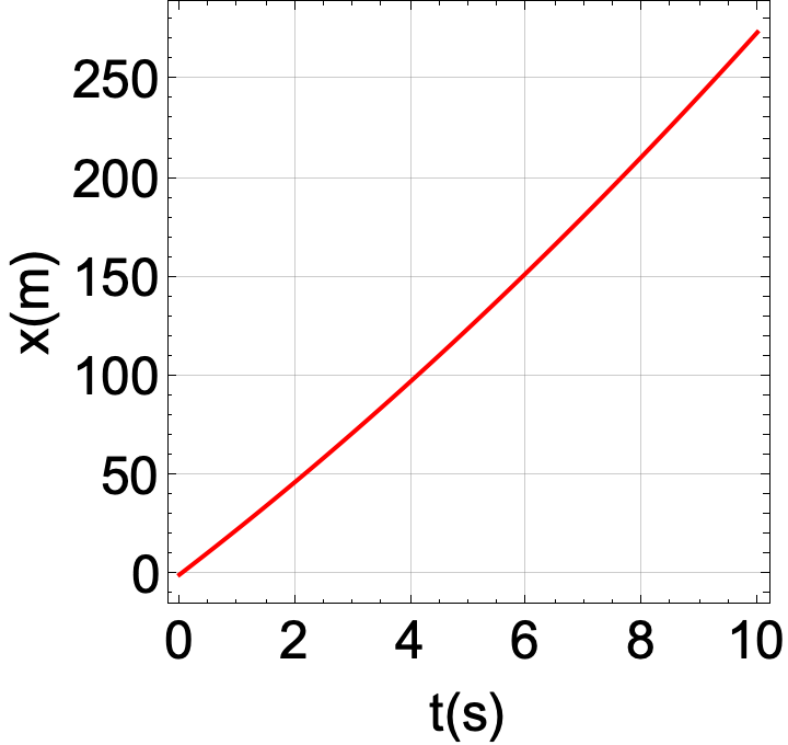 A componente \(x\) da aceleração é positiva e constante: