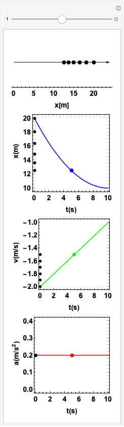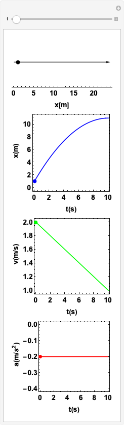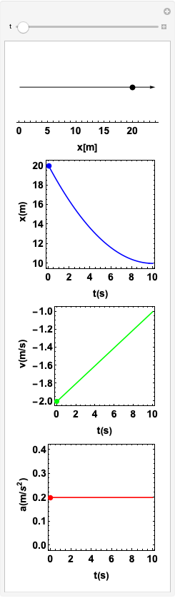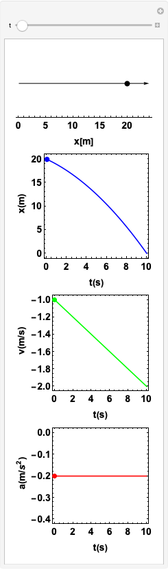 A componente \(x\) da aceleração é negativa e constante: