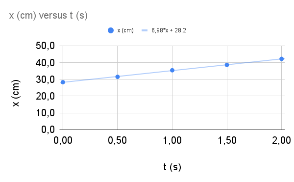 onde \(t\) está em s. A posição inicial é \(x_0= 1\) m em \(t_0 = 0 \) s. Em \(t=1 \) s, qual é