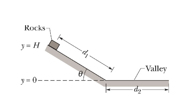 No desmoronamento ocorrido no morro do Bumba, Niterói/RJ (08/04/2010), uma massa de água e lama caiu 360 m montanha abaixo e depois se deslocou 1,00 km em uma superfície plana. Segundo uma teoria, a água e a lama se deslocaram sobre um colchão de vapor d’água. Suponha que a massa caiu com a aceleração constante e que a inclinação do morro era de 45 graus e que depois deslizou horizontalmente, perdendo rapidez a uma taxa constante. (a) Quanto tempo a lama levou para cair os 360 m? (b) Com que rapidez ela chegou embaixo? (c) Quanto tempo a lama levou para percorrer os 1,00 km na horizontal? A3.P2-07