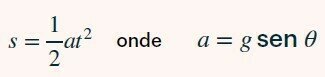 Sabendo que a aceleração ao longo da inclinação é \(a = g\text{ sen }\theta\), investigue o seguinte:
