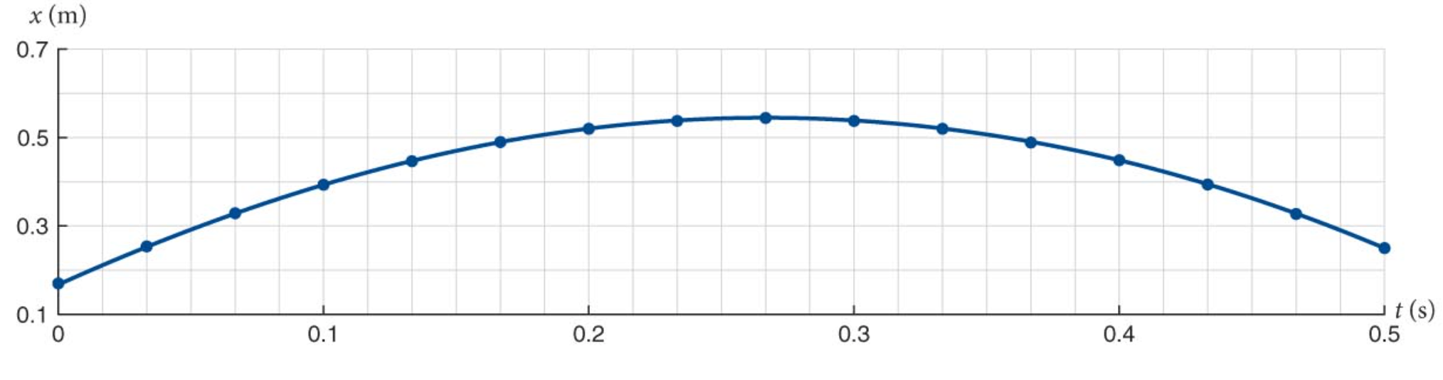 \(x(t) = 1,0+0,5 t+2,0t^2\)