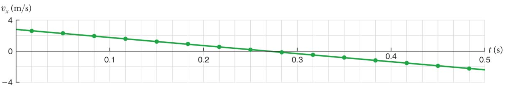A aceleração é constante e vale \(a_x=0,88\) m/s\(^2\).