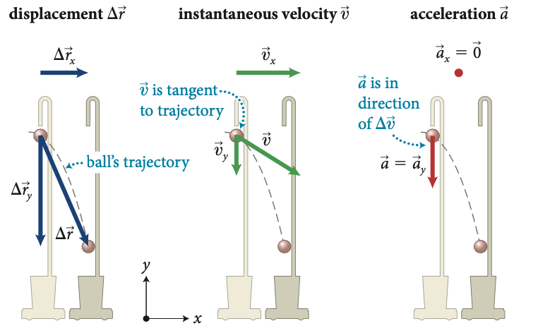 A aceleração média é calculada para cada uma das componentes. No movimento de queda livre, lançamento horizontal e vertical há somente a componente vertical da aceleração.