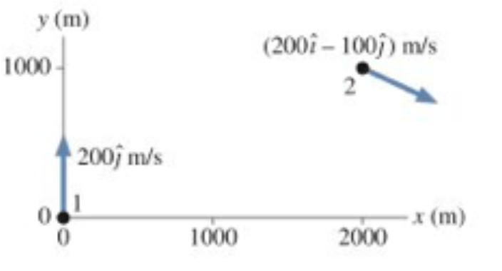 Um drone manobrado com aceleração constante é observado com as posições e velocidades mostradas na figura.