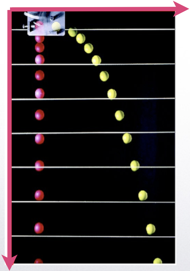 O movimento na horizontal é independente do movimento na vertical. Isso é chamado de independência dos movimentos de Galileu.