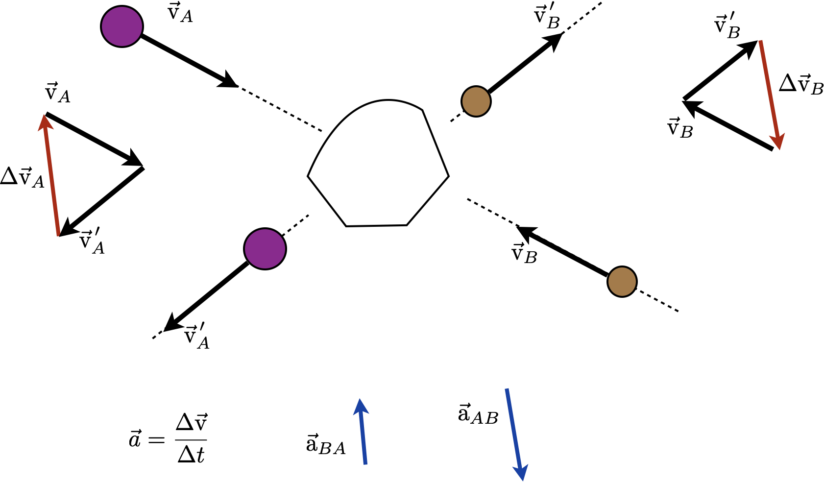 Para bolas de bilhar a interação é de curto alcance.