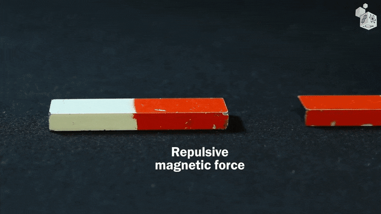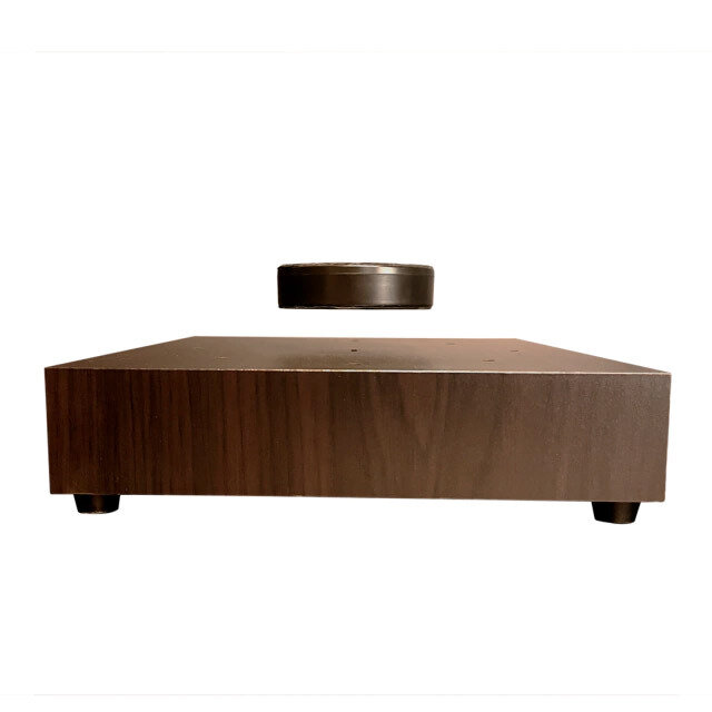 (d) Um ímã que flutua acima de outro ímã que está sobre uma mesa.