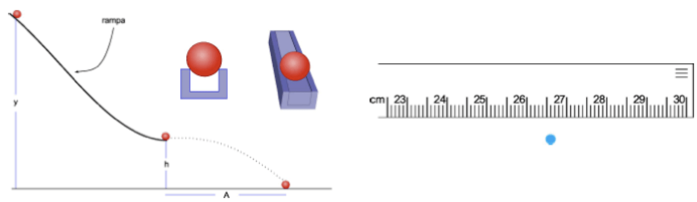 No experimento do alcance, solta-se a bolinha e observa-se onde ela cai: