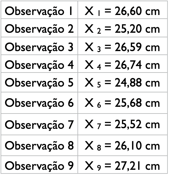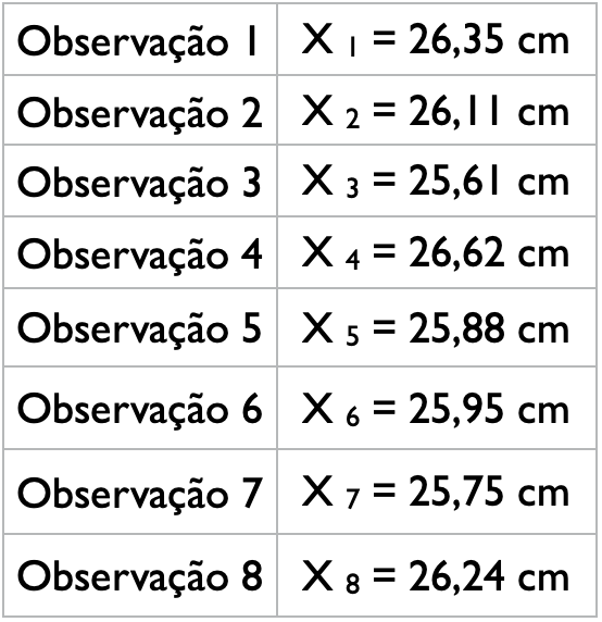 A incerteza \(( \sigma_m )\) dos valores obtidos pelo experimentador A, foi maior que aqueles do experimentador B. Mas os conjuntos de medidas A e B têm uma mesma média.