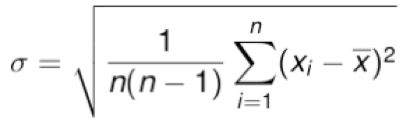 A incerteza da media, isto é sua dispersão em relação ao valor médio é dada pela expressão desvio padrão da média.