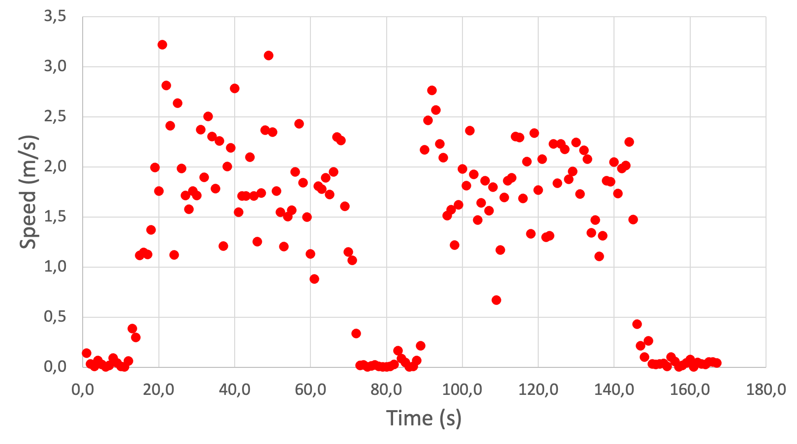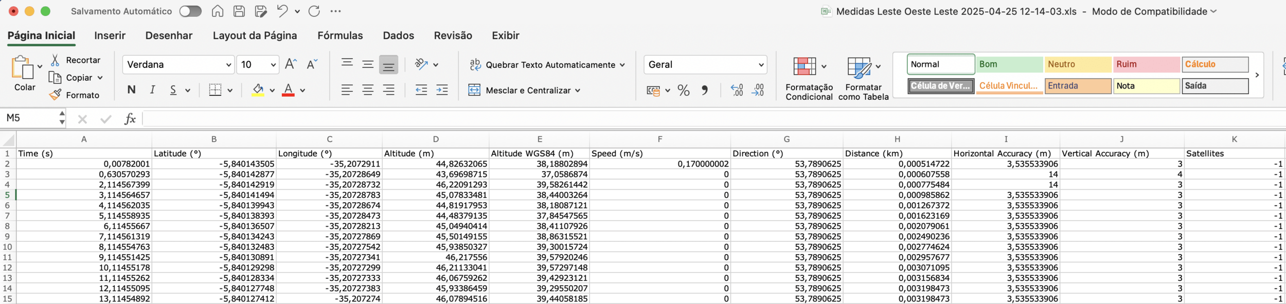 1. Colete dados de localização ao caminhar em linha reta em ritmo constante.