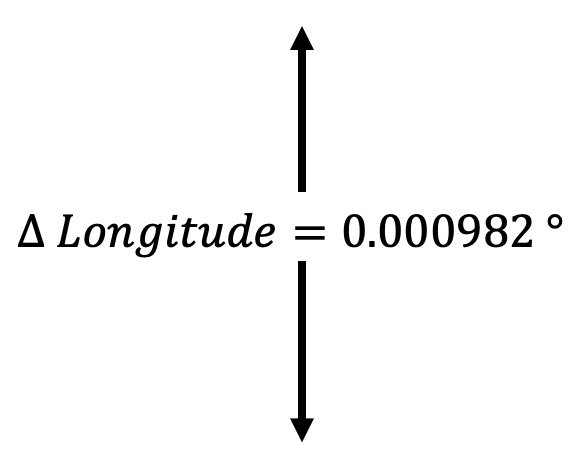 O ângulo que você cobre é \(Long_2 – Long_1\). Na aproximação de ângulo pequeno: